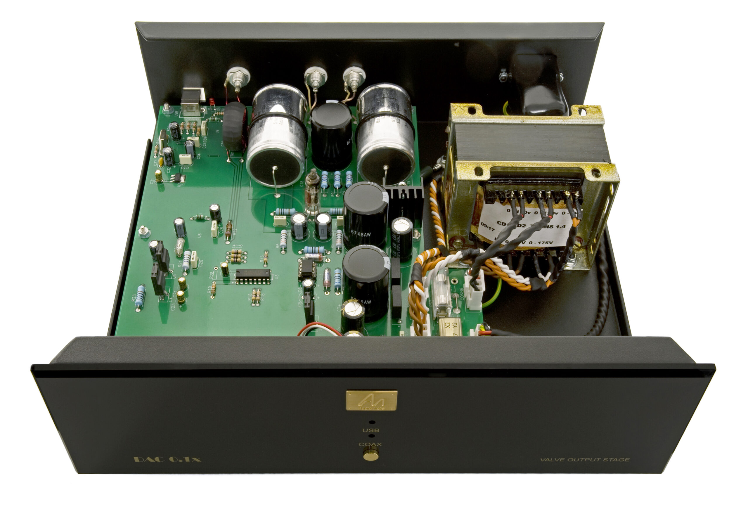 De DAC0.1x converter maakt gebruik van een Philips TDA1543 stereo D/A converter chip en is voorzien van een 6111WA valve zero feedback eindtrap.