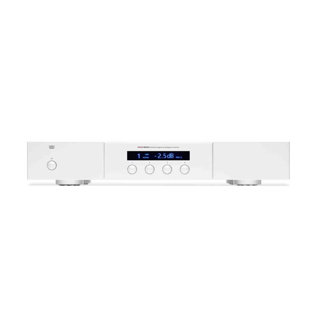 De Weiss MEDUS is een stereo 24-bit / 192 kHz digitaal naar analoog converter die is ontworpen met het doel een absoluut compromisloos audiosignaalpad te behouden. Er werd veel aandacht besteed aan zowel de digitale ingang als de analoge uitgangstrap. Beide streven naar niets minder dan uitmuntendheid. De MEDUS werkt met AES / EBU- of S / PDIF-bronnen en beschikt optioneel over USB-, Ethernet-, Firewire- en ST-glasvezelingangen. De USB-ingang verwerkt zowel PCM- als DSD-signalen. Een IR-afstandsbediening bestuurt alle functies.